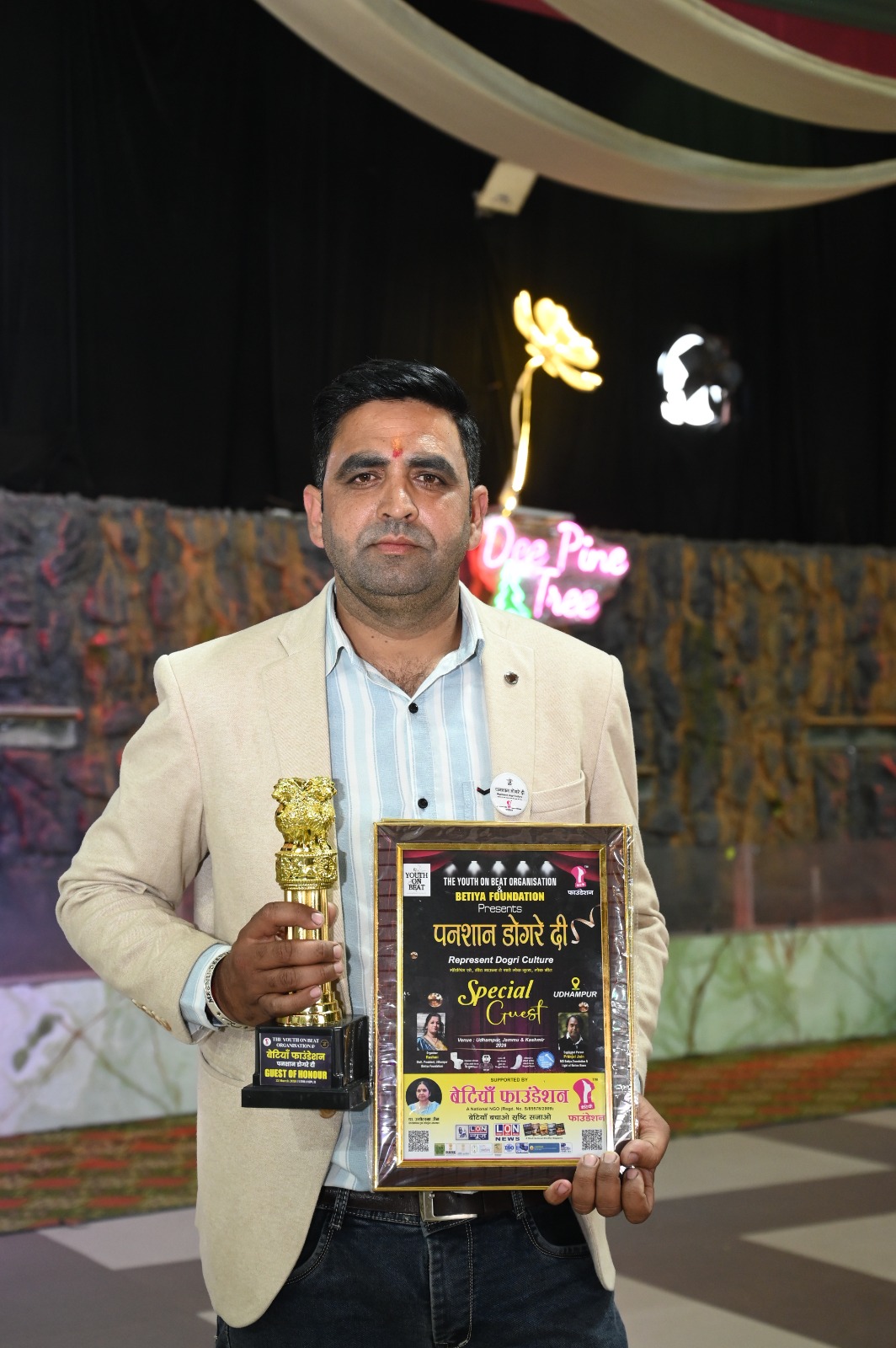 बेटियांँ फाउंडेशन एवं लाइट ऑफ नेशन द्वारा प्रायोजित एवं यूथ ऑन बीट एवं बेटियाँ फाउंडेशन(नेशनल NGO) उधमपुर जम्मू डिस्टिक प्रेसिडेंट आदरणीय रश्मि जी द्वारा आयोजित उधमपुर जम्मू में “पनशान डोंगरे दी” शानदार कार्यक्रम जिसमें लाइट ऑफ नेशन के जम्मू हेड अमित शर्मा जी एवं उनकी टीम ने अहम भूमिका निभाई तथा बेटियां फाउंडेशन जम्मू इंचार्ज हेड दिव्यांश बाबा ने शिरकत की नन्ही प्रतिभाओं का आत्मविश्वास एवं मंच पर सहज अभिव्यक्ति ने लोगों का दिल जीत लिया जिसमें दर्शकों ने तालियाें के साथ बच्चों का उत्साह वर्धन किया जिसमें माननीय विधायक पवन कुमार गुप्ता जी एवं लाइट ऑफ नेशन एवं बेटियों फाउंडेशन के एमडी प्रांजल जैन जी जी ने अति विशिष्ट अतिथि के रूप में तथा बेटियां फाउंडेशन एवं लाइट ऑफ नेशन के नेशनल पब्लिक रिलेशन ऑफिसर (NPRO)एवं उत्तर प्रदेश स्टेट ब्यूरो चीफ अशोक कुमार जी ने विशिष्ट अतिथि के रूप में शिरकत की!
